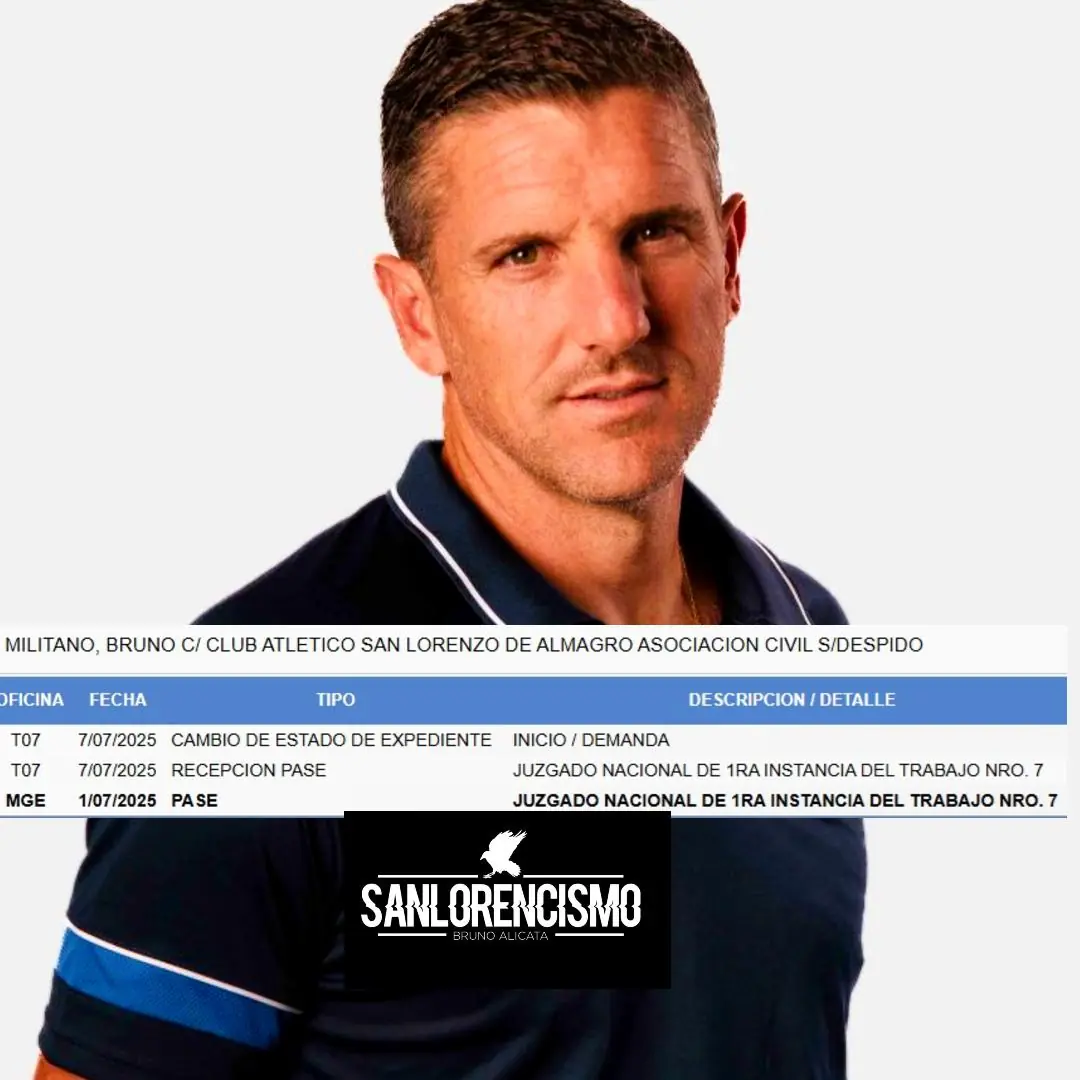 Bruno Militano presentó una nueva demanda laboral contra San Lorenzo de Almagro. Te contamos todos los detalles del reclamo judicial y qué implica para el club. Otra demanda laboral sacude a San Lorenzo: Bruno Militano inicia juicio